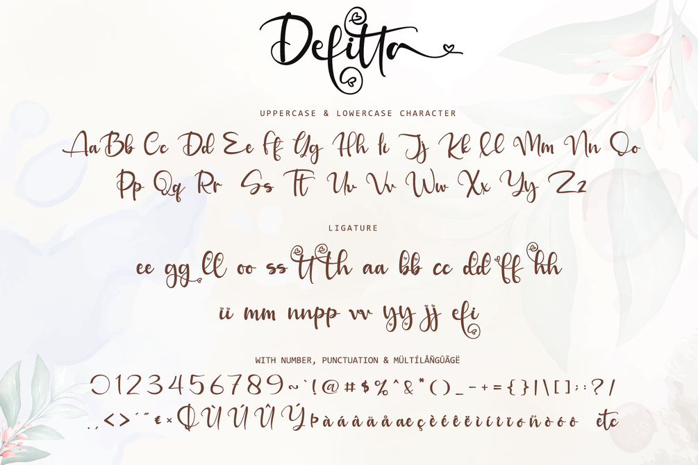 Defitta is an incredibly beautiful script font. It has a classy, beautiful, and modern look that can be used for logos, branding, invitations, stationery, wedding designs, social media posts, and much more!